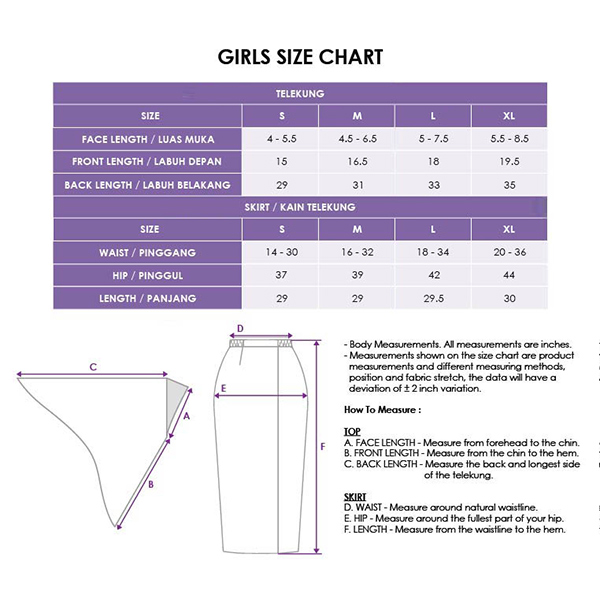 - 2-piece set includes: telekung & skirt
