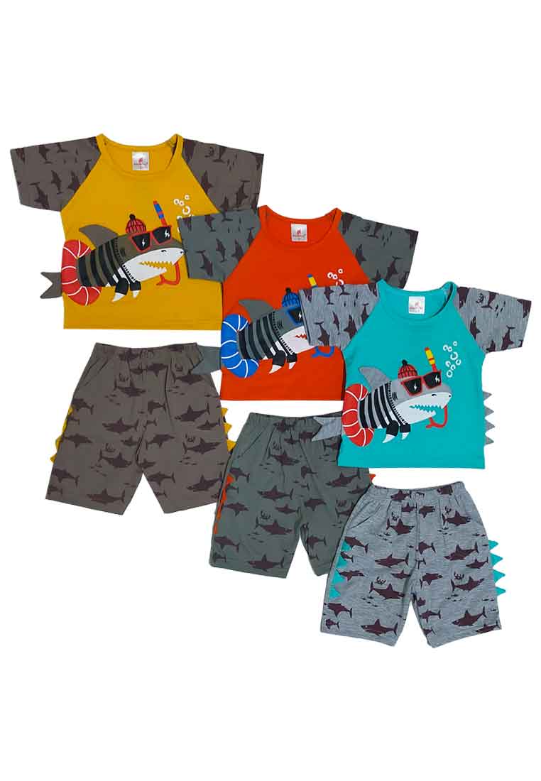 Boys Tee & Shorts Set Baju Budak Lelaki Lengan Pendek Sepasang